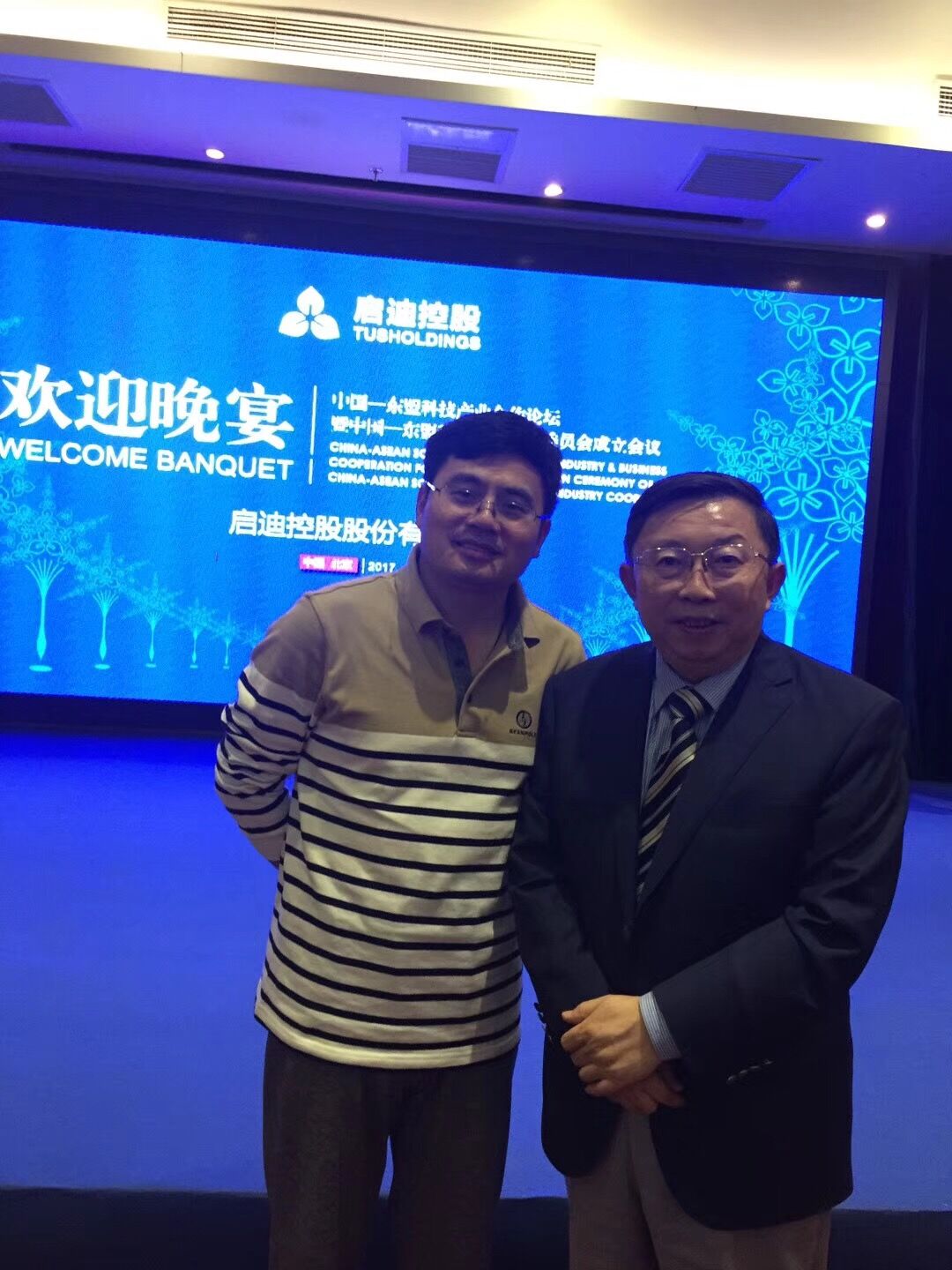2017年10月25日北京,执行理事长许宁宁出席中国—东盟科技产业合作论坛欢迎晚宴,与启迪控股总裁先后致辞;与广西大学副校长、印尼四位参会代表、柬埔寨四位参会代表交谈合影。