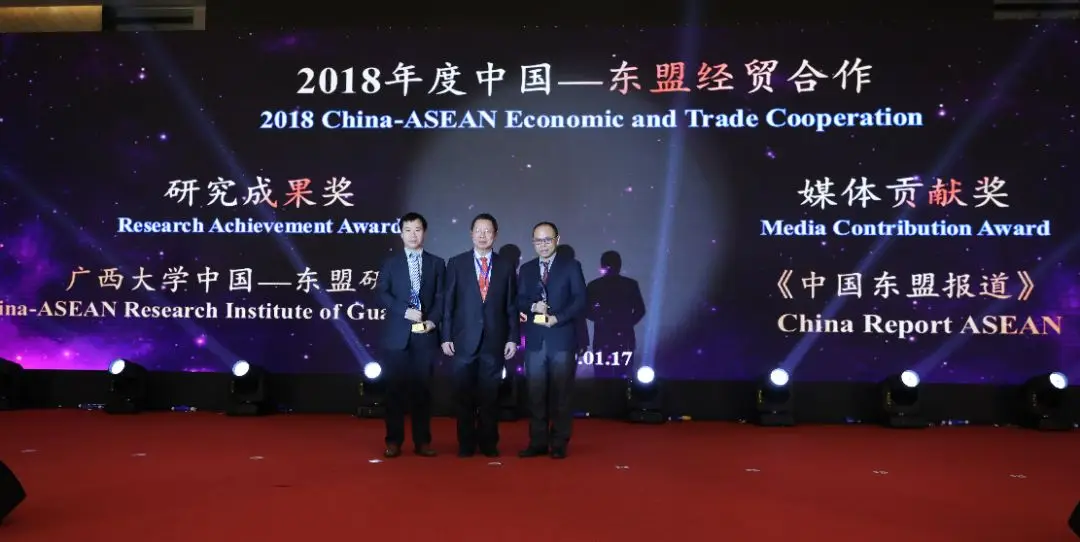 中国贸促会前副会长于平宣读了“2018中国—东盟经贸合作研究成果奖”、“2018中国—东盟经贸合作媒体贡献奖” 获奖名单,并颁奖。广西大学中国—东盟研究院获“2018中国—东盟经贸合作研究成果奖”,英文版《中国东盟报道》杂志获“2018中国—东盟经贸合作媒体贡献奖”。
