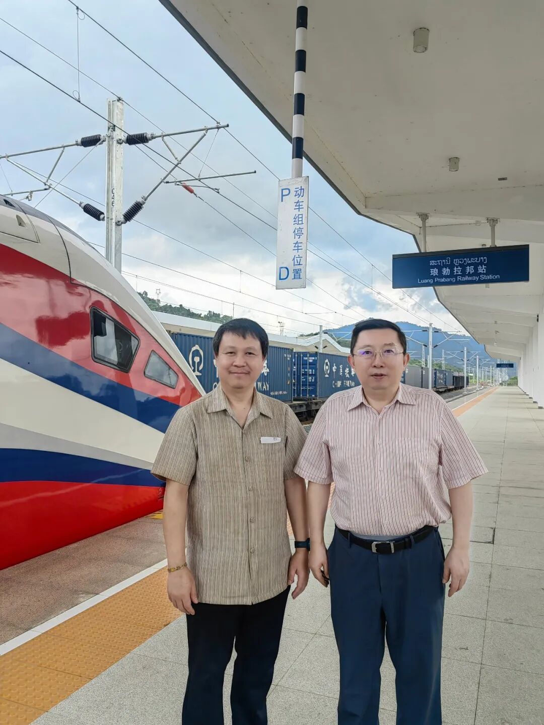 △老挝时任驻华大使馆商务参赞陪同许宁宁乘坐中老铁路列车,在万象考察市场。