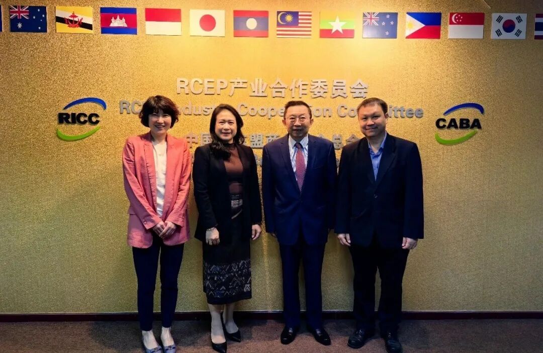 △2025年,时任老挝驻华大使馆商务参赞宽赞(右一)及新到任的商务参赞陈丽萍(左二)到访RCEP产业合作委员会办公室。